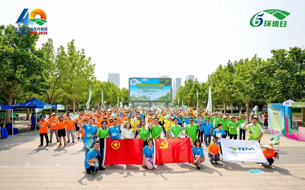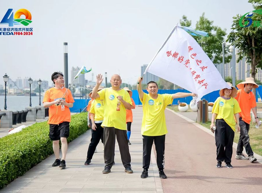 2024年6月5日,天津經(jīng)開區(qū)生態(tài)環(huán)境局聯(lián)合相關部門,在于家堡濱河公園組織開展“低碳健步走、綠色環(huán)保行”主題活動。本次活動作為天津經(jīng)開區(qū)2024年六五環(huán)境日系列活動之一,得到了經(jīng)開區(qū)企業(yè)員工、廣大市民積極響應,經(jīng)開區(qū)企業(yè)、管委會機關、經(jīng)開區(qū)環(huán)保協(xié)會會員單位等59支代表隊230余人參加。中共天津哈娜好黨總支也派出代表隊積極參加環(huán)境日“低碳健步走、綠色環(huán)保行”活動。